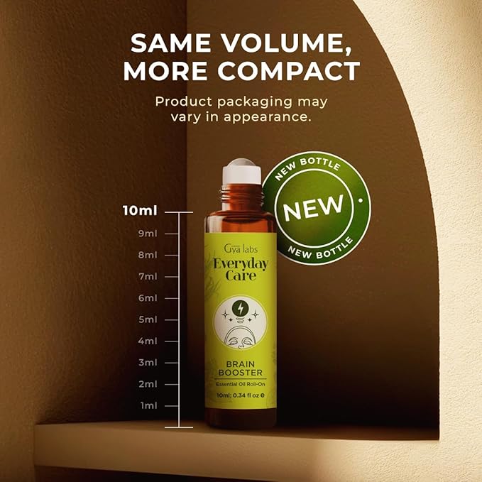 Gya Labs Brain Booster Essential Oil Roll On - 0.34 Fl Oz - Travel Size Roller for Camping, Skin, Aromatherapy Relief, Convenience
