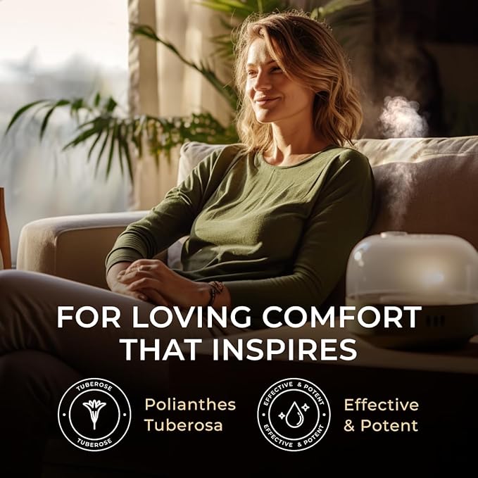 - A loving embrace for the body. Blossom comfort into the body with our nurturing tuberose essential oil. Just mix 2-3 drops of this essential oil with any massage oil and gently ease the day off of your body with a soothing rubdown.