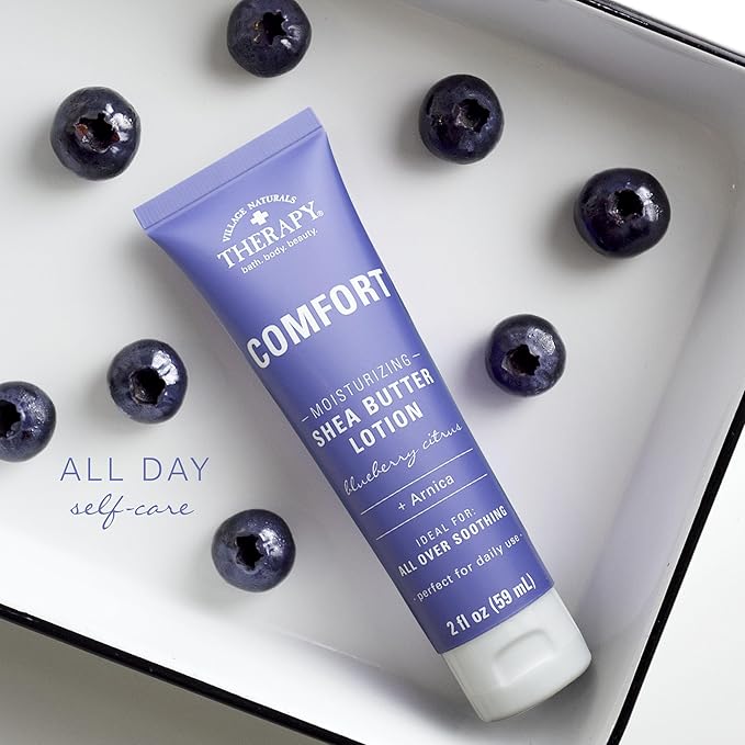 Village Naturals Therapy Comfort Shea Butter Hand & Body Lotion, Blueberry Citrus Scent, 2 fl oz, Pack of 6