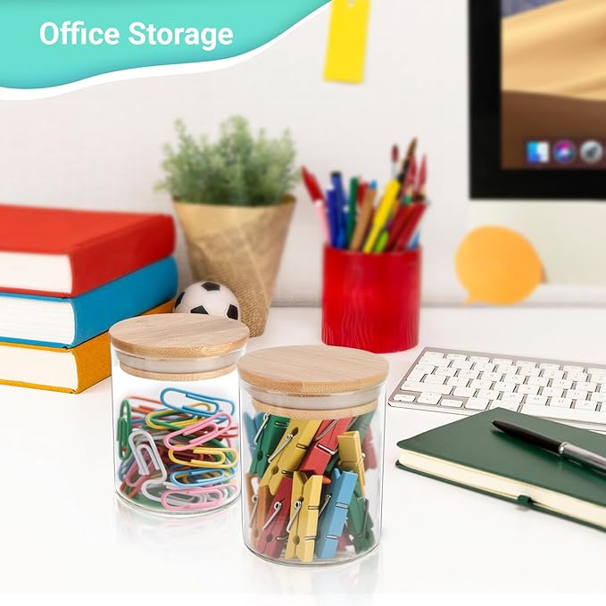 - Stylish Vanity Organizer: These apothecary jars not only serve as functional storage containers but also add a chic touch to your makeup organization. Use them to store beauty eggs, hair ties, and floss picks while enhancing your vanity decor and overall aesthetic of your bathroom.