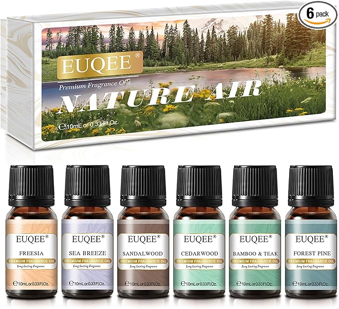 - Nature Air Clean Scent-EUQEE fragrance oil series contains 6 10ml/0.33oz bottles of aromatherapy essential oils, they are Freesia , Sea Breeze, Bamboo & Teak, Cedarwood, Forest Pine, Sandalwood. Feel the scents of clean nature air in your whole house, benefits for daily use