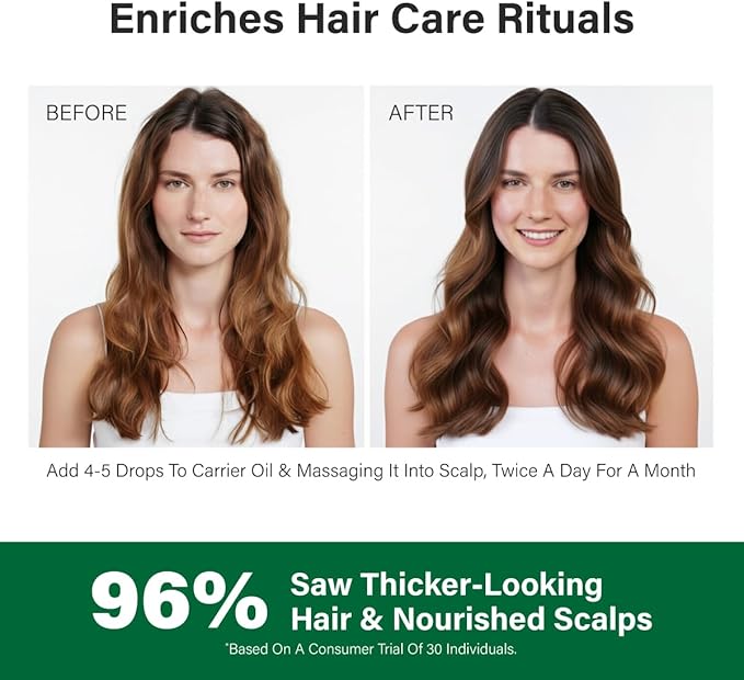 - For fuller-looking hair. Rosemary oil for hair or aceite de romero para el cabello is the perfect addition to daily hair rituals for hair nourishment. Add 1-2 drops of rosemary essential oil into hair care routines.