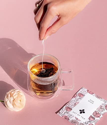 - DELICIOUS EXPERIENCE – This Art of Tea sampler pack includes 12 pyramid tea sachets of our all-new Rose Black Tea, a silky, full body blend of rich black tea with hints of freshly blossomed rose petals that offer a refreshingly complex flavor that will leave you calm and relaxed. Our carefully hand selected rose tea leaves are picked fresh and are made up of the most amazing edible rose petals for desserts we could find. This rose petal tea is just like afternoon tea at your local Rose Gardens.