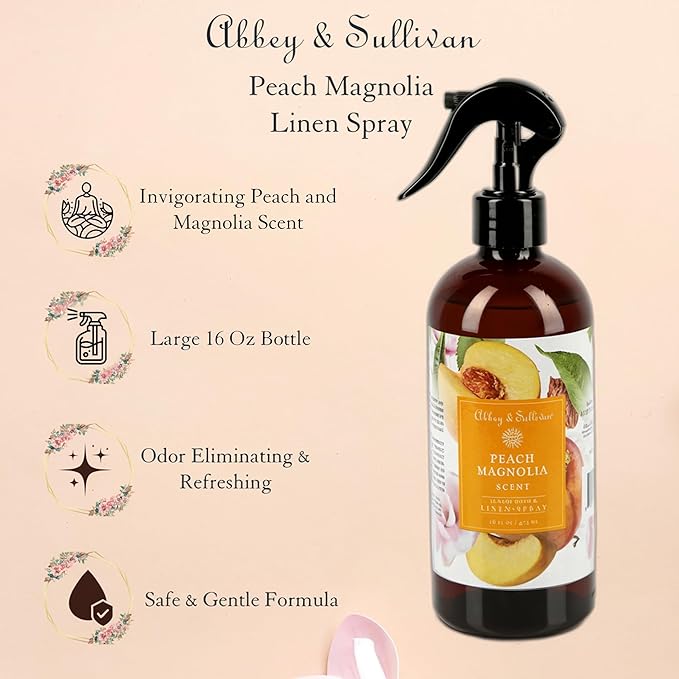 Abbey & Sullivan Odor Eliminating and Refreshing Linen and Room Spray, Peach Magnolia, 16 oz