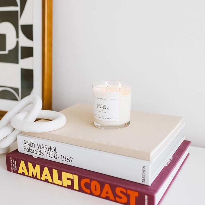 Calyan Wax Co. 2 Wick Candle, Smoke + Leather Scented Candle, 37 Hour Burn Time, Aromatherapy Soy Candles, Non Toxic & Vegan Soy Wax, Glass Tumbler Scented Candles, 8.8oz