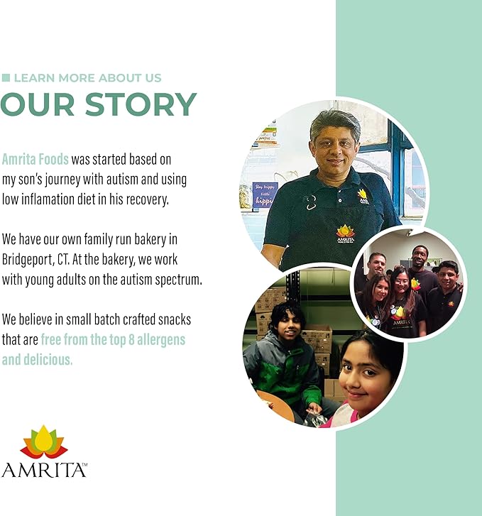 - Amrita Promise - We assure a friendly plant based, vegan snack manufactured on dedicated equipment free of top allergens and operated by our specially trained staff.