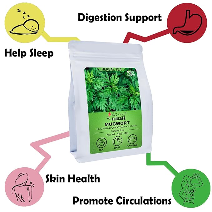 FullChea - 100% Pure Natural Dried Mugwort Herb Loose Leaf - 4oz/114g - Superior Dried Mugwort Tea - Sulfur-free - Non-GMO - Caffeine-free - Help Lucid Dream
