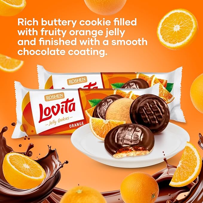 Roshen “Lovita” Jelly Cookies, Biscuits with Orange Flavored Jelly Filling 4.76 oz/135grams, Pack of 2