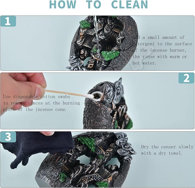 - [ Backflow Incense Holder ] - jessie's incense burner is designed to come to life as a flowing landscape painting. It looks very natural as if in the forest, making people feel relaxed and comfortable. There are two positions in the front and back for the incense sticks and wicks of the incense burner, you can place them according to your preference. After lighting the incense burner, the smoke in the tray in the front is like a heaven on earth that accelerates your heart to calm down and get aw