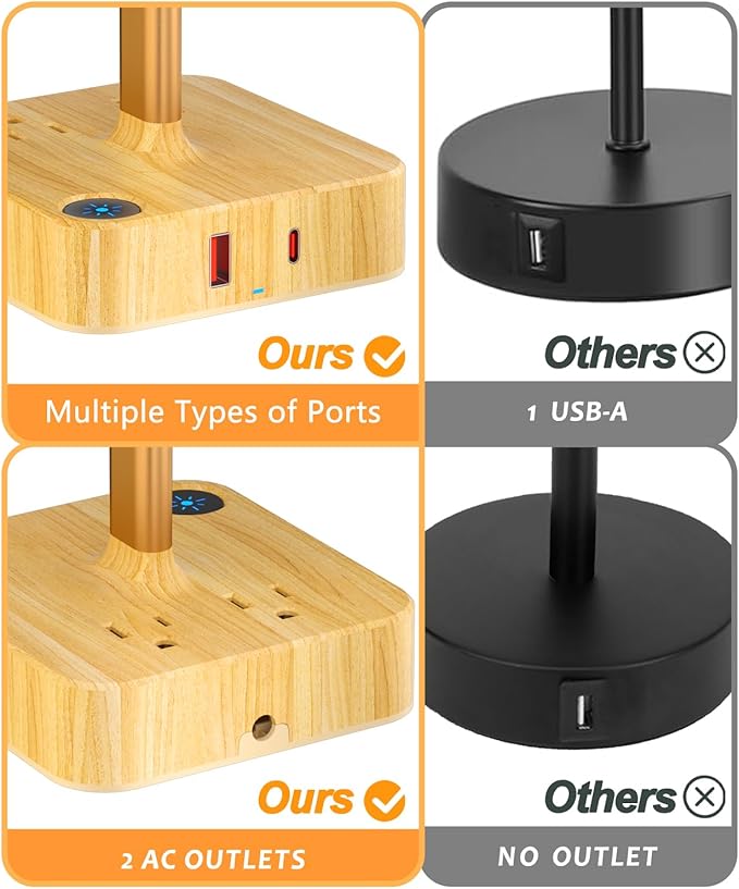 - 2 USB Ports 2 AC Outlets:The base of this decorative and unique desk and table bedside lamp contains 2 USB port and 2 outlets power strip so that you can charge your mobile phones, tablets, laptops, and other electronic devices. The USB port functions regardless of whether the lamp is on or off. It will look beautiful in any contemporary home or office.