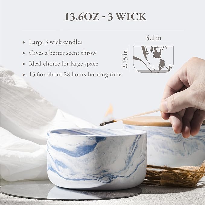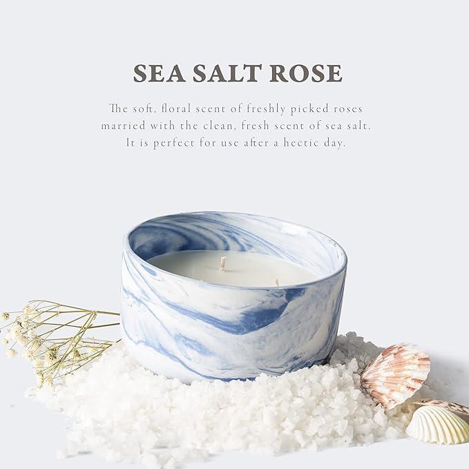 Hidden Label Scented Soy Candles, Large Candle 3 Wicks 13.6oz Sea Salt Rose Ceramic Jar Lava Collection, Gorgeous Gifts for Birthday Thanksgiving Christmas