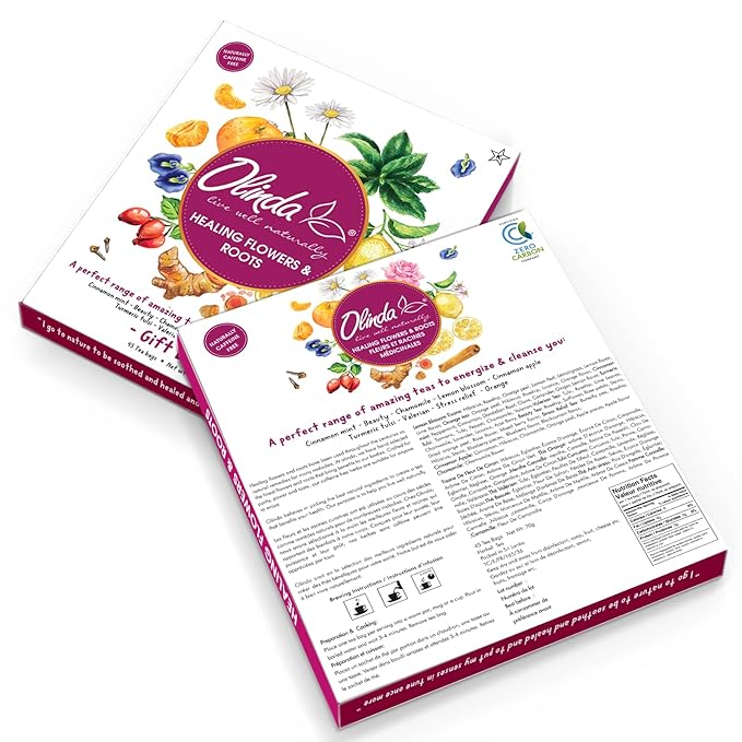 Olinda Healing Flowers & Roots Gift Box Natural Caffeine Free Tea Organic Herbal Tea Bags Healthy Beauty Tea Wellness Stress Relief Tea Sampler Gift Set Premium 9 Vareity Individually Wrapped 45 Tea Bags 1 Tea Gift Box for Women