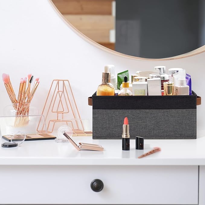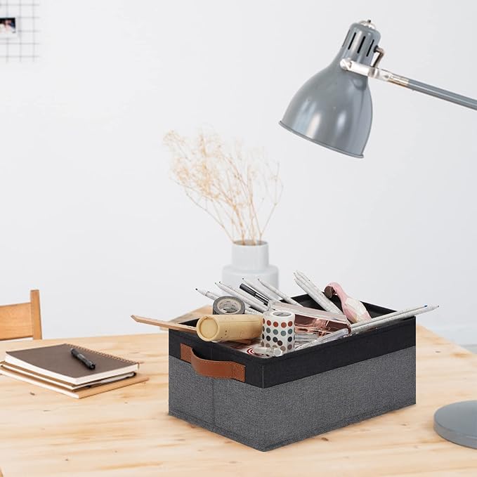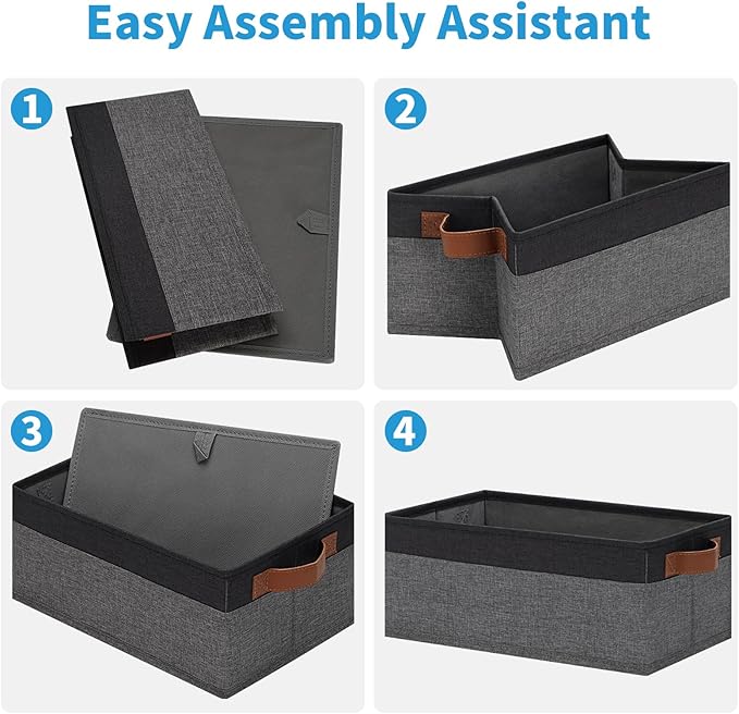 - 【FOLDABLE STORAGE BASKET】The collapsible and lightweight baskets for organizing allows you to easily place it when not in use, just by pulling out the stiff bottom cardboard, saving space when not in use or transportation. They are quite easy to assemble, place the stiff bottom cardboard inside and it's ready