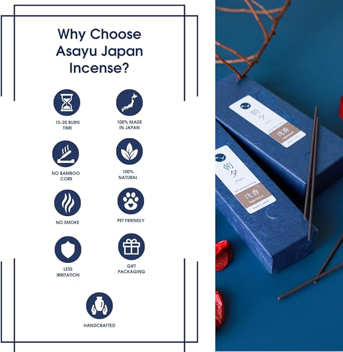 - 【About Asayu Japan 】We all have busy lives. But sometimes it's good to take a deep breath & connect with your inner self. Start your day with a clear mindset and end at night calmly thinking about what you accomplished. That is what our Japanese incense sticks can help you to do. Relax. Connect. meditate. Or, to put it simple, just take care of yourself.