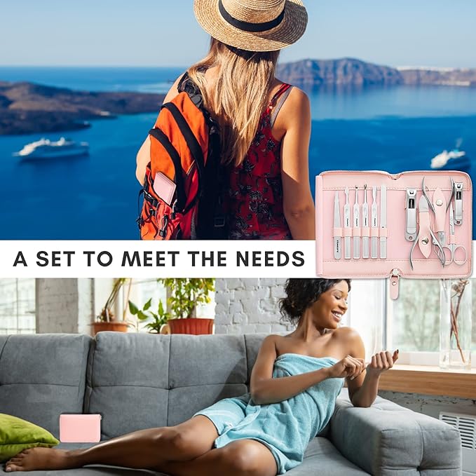 - SPECIAL DESIGN & PORTABLE - Each tool has a fixed slot to keep the kit for manicure organized; there is a cloth in the middle so the tools won't rub against each other when closing the package. The lightweight design makes it your perfect travel companion and travel manicure set for a salon-like experience on the go or at home