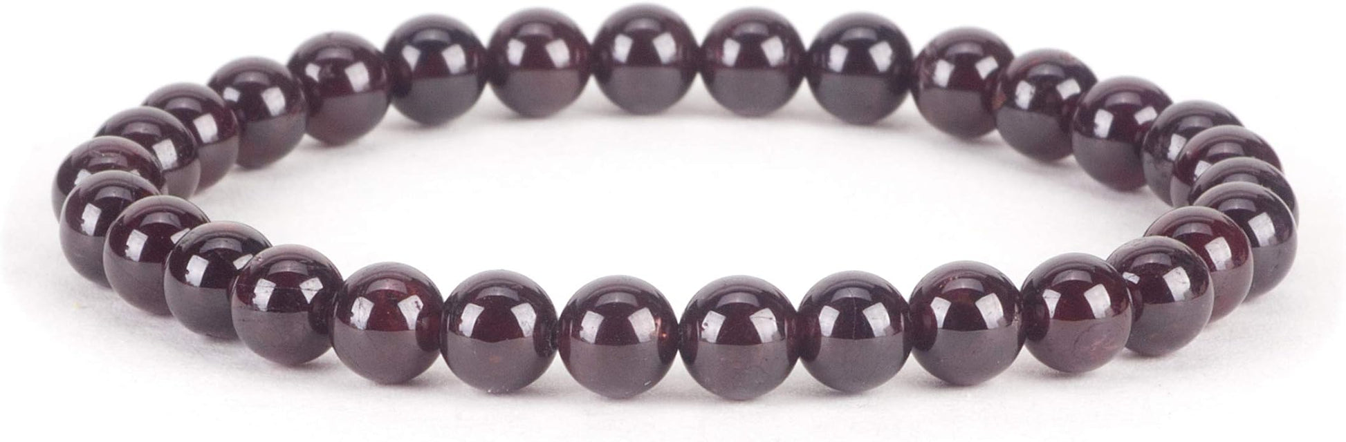 - CONTAINS: A red garnet bracelet made with 6mm semi-precious beads packaged inside a protective cloth drawstring pouch. Red garnet is pyrope, a red variety. Garnets have been used as gemstones since the bronze age.