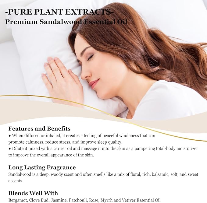 EUQEE Sandalwood Essential Oil(4 oz/118 ml) Sandalwood Oil Oil with Glass Dropper, Great for Diffusers, Soap & Candle Making
