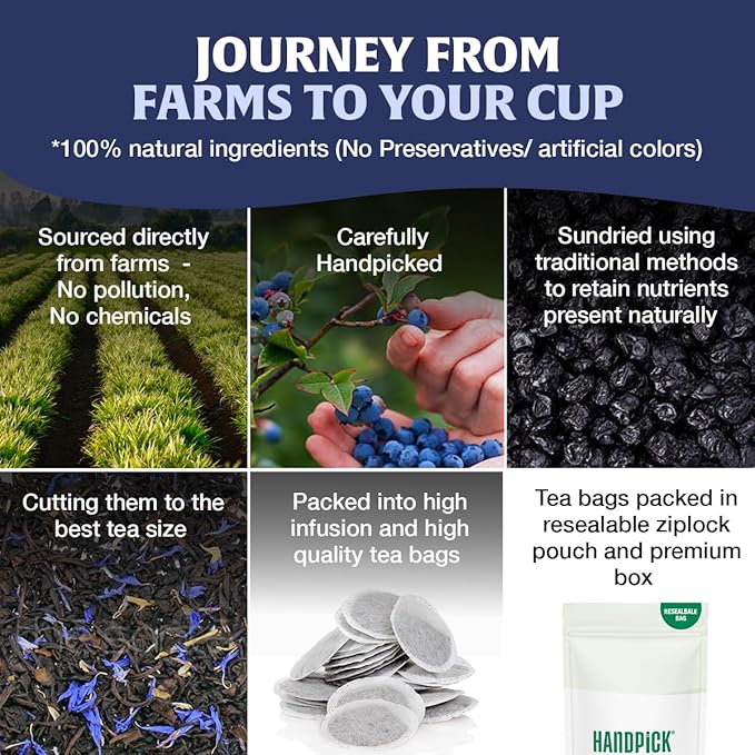 HANDPICK, Wild Blueberry Tea Bags (100 Count), True Premium Blueberry Herbal Tea with Hibiscus, Rose & Licorice | Brew Iced/Hot Tea