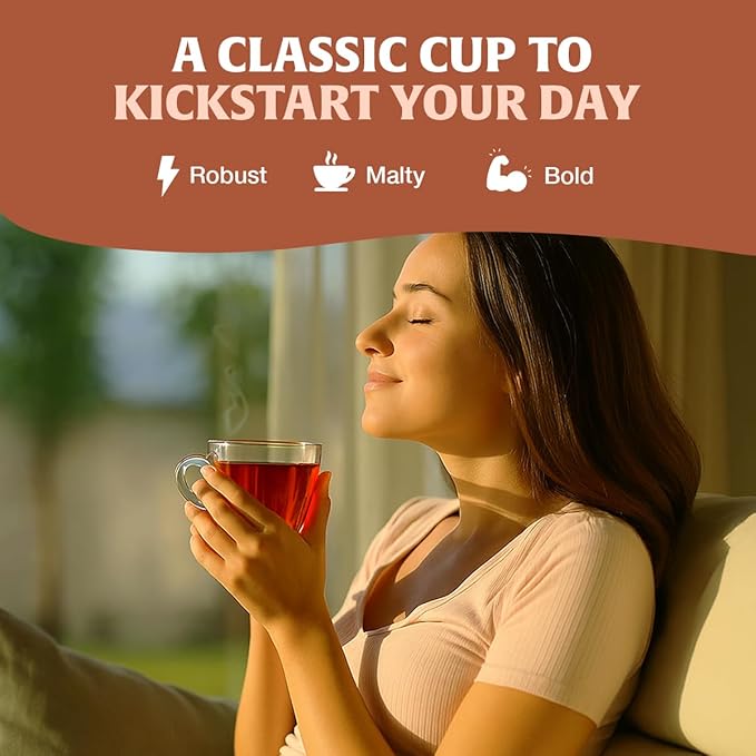 - STRONG, BOLD &TEA LEAVES - Elevate your mornings with our strong and robust English tea, sourced directly from high-elevated tea plantations in India. This delicious, caffeinated black tea provides a delightful kickstart to your day. Loaded with nutritious benefits, it stands apart from other herbal teas and can even be used to brew Kombucha tea, adding to its versatility.