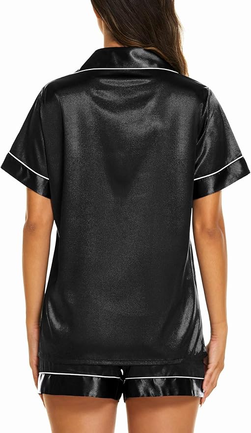 Ekouaer Silk Pajamas for Women Short Sleeve Sleepwear Soft Button Down Loungewear 2 Piece Satin Pjs Shorts Set S-XXL