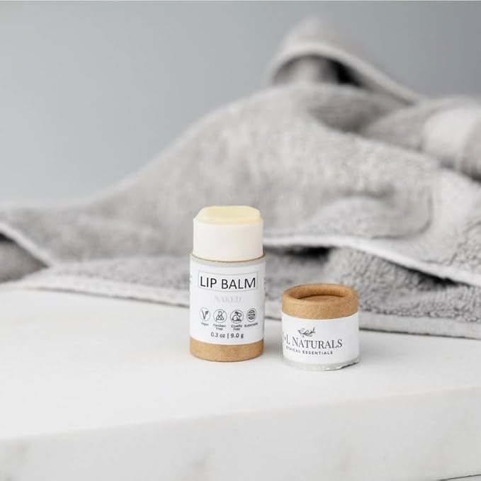 J&L Naturals Sustainable Lip Balm | Organic Ingredients, 100% Natural, Eco-Friendly | Cruelty Free, Vegan, Paraben Free, Silicone Free (Naked (Unscented), 5-Piece Bundle)