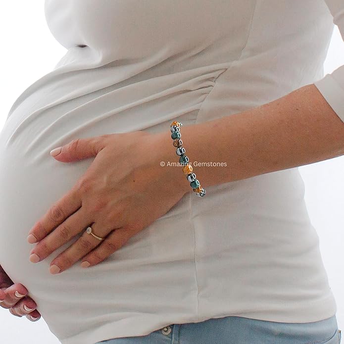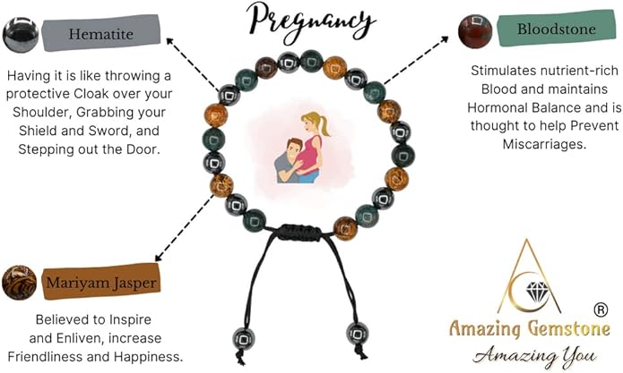 - Bracelet for Pregnancy contains real crystal beads Hematite, Mariyam Jasper and Bloodstone. Hematite for Protection, Mariyam Jasper for Hormonal Balance & Bloodstone for Inspire Happiness Stocking Stuffers.
