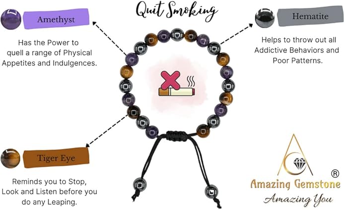 - Bracelet for Quit Smoking contains real crystal beads Hematite, Tiger Eye and Amethyst. Hematite for Focus, Tiger Eye for Strength & Amethyst for Tranquiliser Stocking Stuffers.