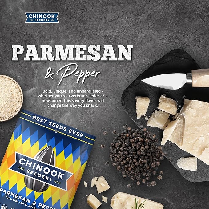 Chinook Seedery Roasted Sunflower Seeds - Jumbo Seeds Keto Snacks - Best For Snack Packs - Gluten Free, Non GMO Snack Food Gifts - 4 Ounce (Pack of 3) - Parmesan & Pepper Flavor Pack