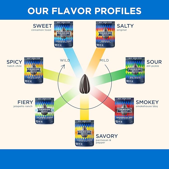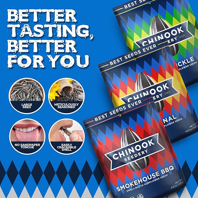 - PRIME CHINOOK SEEDERY: Sunflower seeds are so naturally healthy β full of vitamins, minerals, and healthy fats, Chinook Seedery added a twist to this good snack and created the best-flavored sunflower seeds ever! Want a new kind of seeding experience? Get the best bucket of seeds ever now! For a perfect day out in the sun, either in the yard or on the baseball field, you'll enjoy our Lawnmower Variety Pack which includes our Dill Pickle, Smokehouse BBQ, and Original flavors!