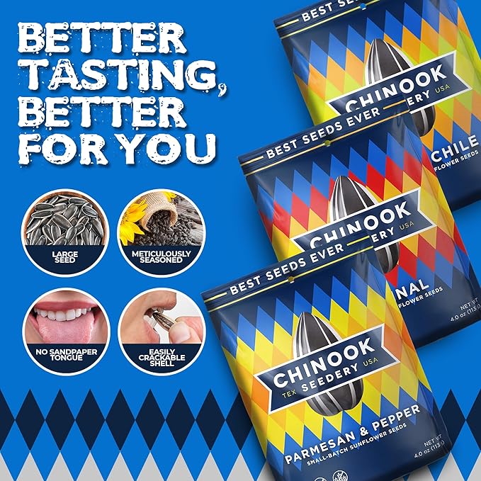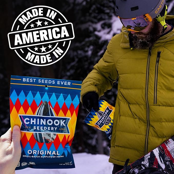 - GREAT FOR GROUP & SOLO EATING: Ideal for baseball, road trips, camping, fishing, hunting, disc golf, & softball. No matter what your adventure, having a bag of Chinook nearby keeps you fueled for success. There's just something about cracking and spitting seeds that put you in a winning mindset. The official sunflower seed of USA Baseball and partnered with Bobby Witt Jr. of the Kansas City Royals, itβs also a perfect snack to have in the dugout at your next baseball game.
