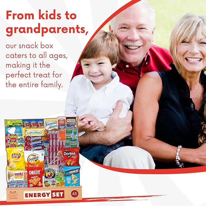 Jumbo Jumble Snack Box (45 Count) Gift Care Package Snacks Variety Pack for Adults Teens Kids Men Women School College Office Birthday (Energy Set)