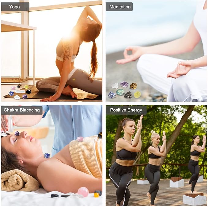 - Benifits from Crystals and Stones: Stimulate the chakras, raise the level of consciousness,it is said that these crystals and gemstones can bring great positive energy to eliminate negativity, and increase positive emotions and good vibes, thereby relaxing our mood and keeping us happy.