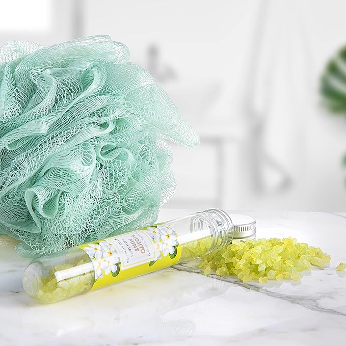 - SET INCLUDES β This set comes with 5 tubes of bath salts that are all 1.51 oz. The bath salts are packaged in a beautiful wooden present box.