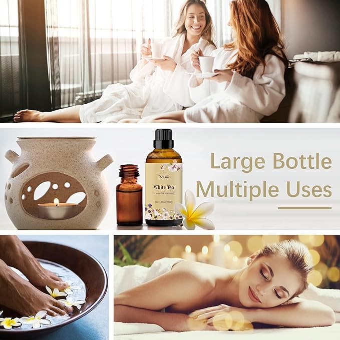 White Tea Essential Oil 100ml (3.3 Fl Oz), ESSLUX Aromatherapy Essential Oils for Diffuser, Massage, Soap, Candle Making, Home Fragrance