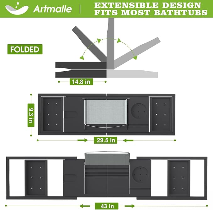 - 🛀🏼FOLDABLE & EXPANDABLE - Folding design makes your bathtub caddy easier to store, reduced storage space requiements. This tub tray is designed to expand from 29.5” to 43”. fit almost any bathtub width, you just need to manually adjust it to the right length and don't need any tools.