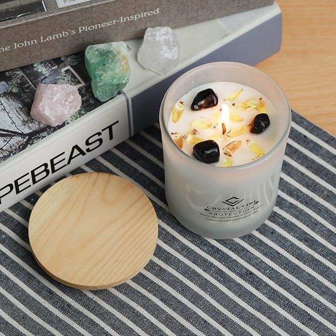 - ✔️ LONG TIME BURNING 🕯️ -This protection crystal candle consists of slow-burning 100% natural soy wax, which is purely vegan and cruelty-free which makes this vanilla scented candle clearance long lasting.