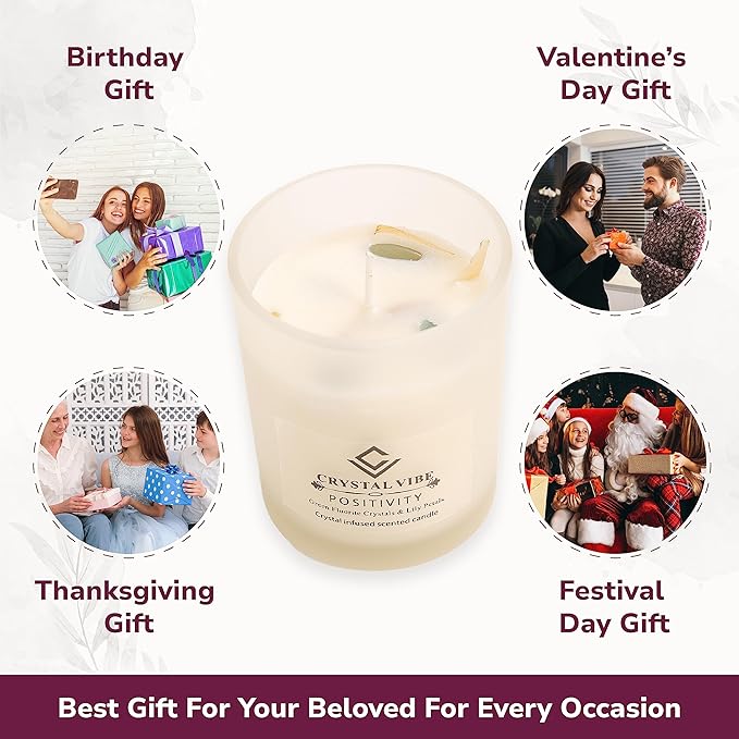 - ✔️ GIFT PACKAGING 🎁 - Wonderful and perfect packaging of positivity crystal candle cares for the safe and sound arrival of scented candle gift set at your door. Moreover, the box of soy candles with crystals inside is very delightful which makes it perfect as a gift for the loved ones.