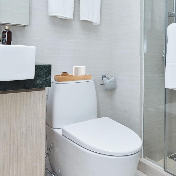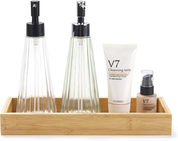 - Application: The bamboo tray is great to be vanity tray, bedside table tray, coffee table tray, entryway tray, bathroom storage tray, decorative tray. Suitable to set it on toilet tank top, vanity, dresser, nightstand, table, desk or shelf. Keep your items organized and within reach.