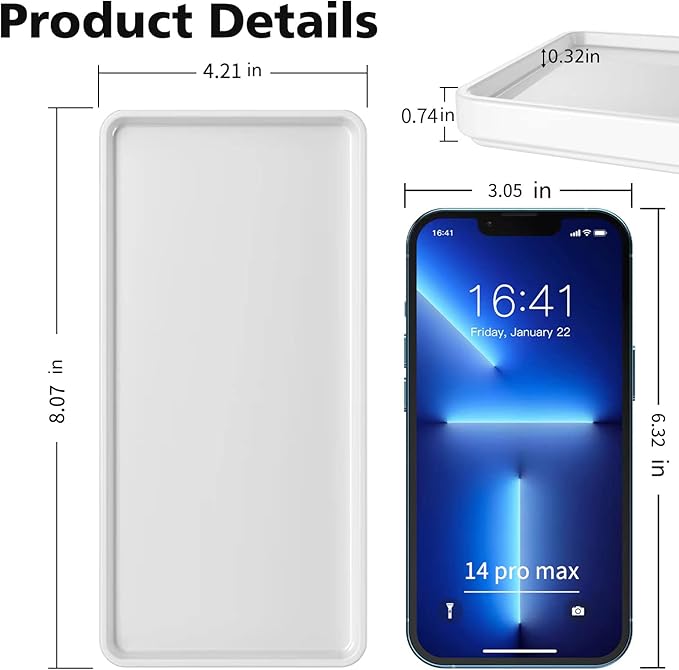 - HUMANIZED DESIGN: The four corners are all rounded right angles,which are very smooth to the touch,and the raised walls around it can perfectly protect things from falling; The bottom is non-slip and can be easily used wherever you need it