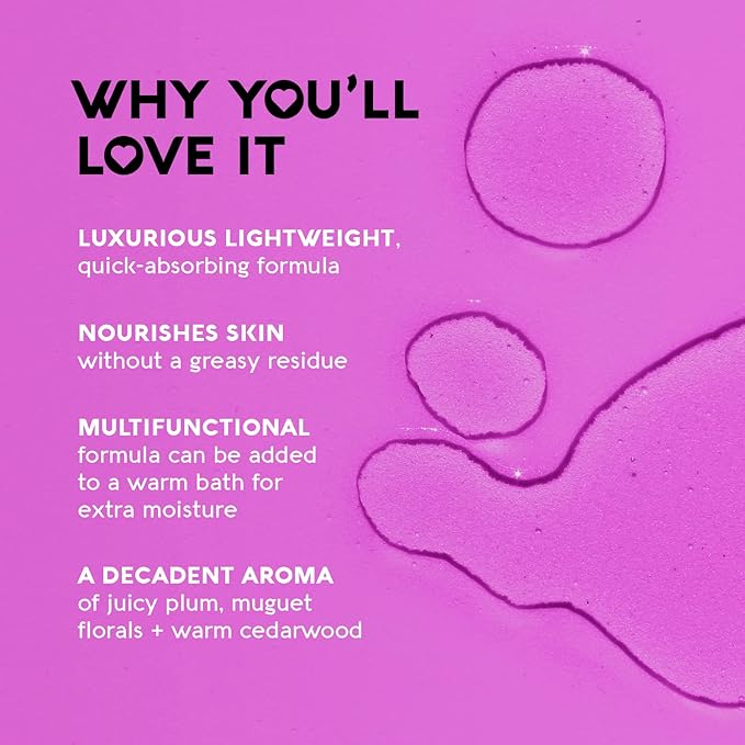 - Nourish Your Skin: Lightweight, fast-absorbing bath and body oil; hydrates deeply without a greasy residue
