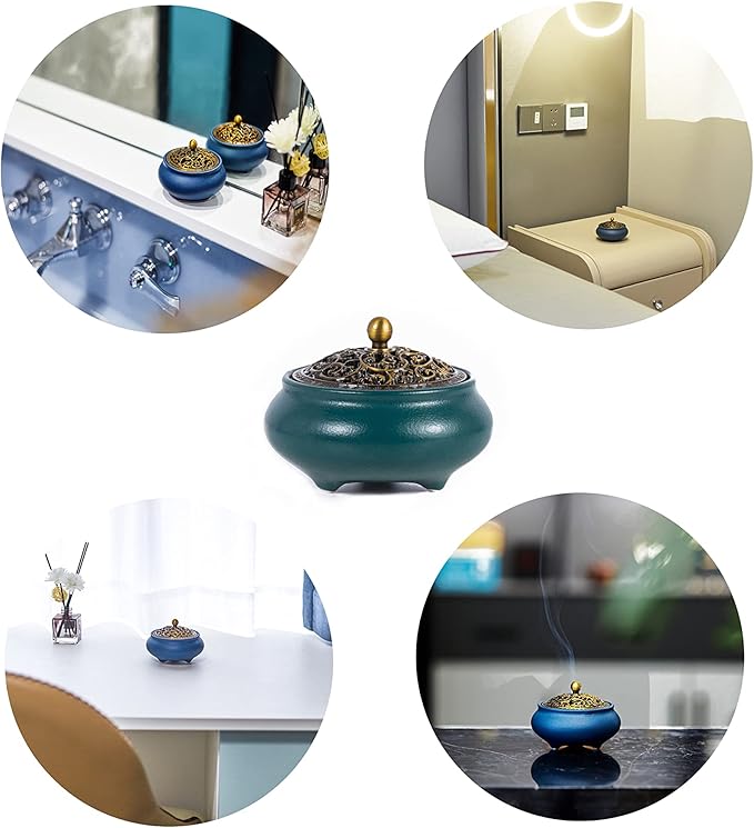 - 【Carved Hollow Metal Lid, Incense Holder & Fireproof Cotton】 Intricately carved hollow metal lid allows smoke to elegantly escape. Comes with a brass incense holder and fireproof cotton for safe and clean burning.
