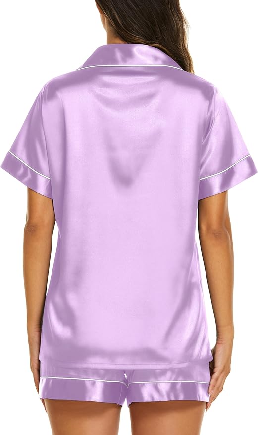 Ekouaer Silk Pajamas for Women Short Sleeve Sleepwear Soft Button Down Loungewear 2 Piece Satin Pjs Shorts Set S-XXL