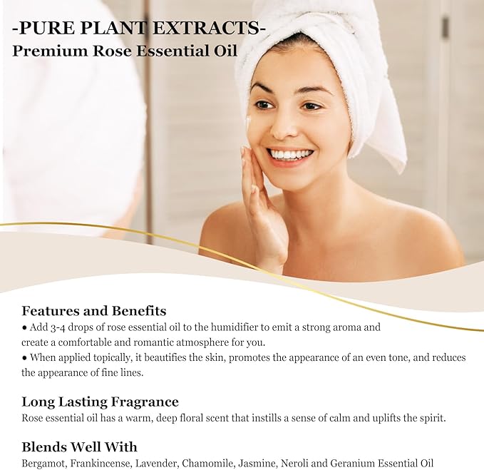 - Scent Characteristic: Rose essentialoil has a pale yellow or greenish color. It smells beautiful like fresh cut roses. This strong, floral fragrance is romantic and luxurious.