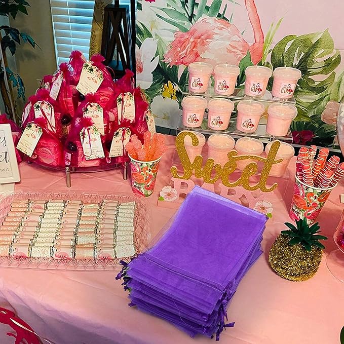 - 🍇SIZE&COLOR- Size: 5x7 Inch, Color: PURPLE, also available in other colors (Black, White, Orange, Red, Gold, Pink). Package includes 50 pieces of purple organza bags, perfect for your specific party theme: Valentine, Christmas, Halloween, Party, Wedding or Birthday, etc..