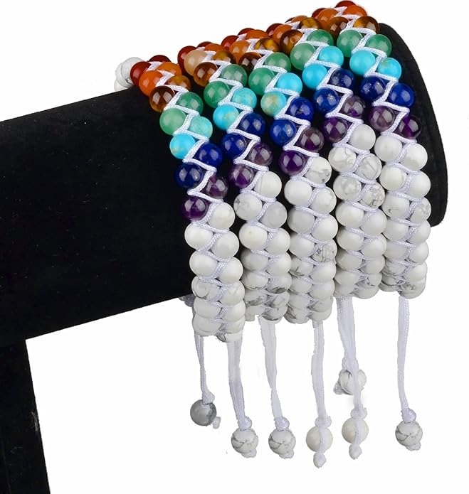 - MORE THAN JUST BRACELETS: 7-Chakra multi-color can fulfill difference natural power at the same time. One bracelet can fulfill more than one field of power to the wearing person. No matter luck, love, mental power, wealth or health: all can covered by a single bracelet. Worth to have one for every person. Howlite will help you to communicate with truth, balance your male and female aspects, allow you to access past life knowledge.
