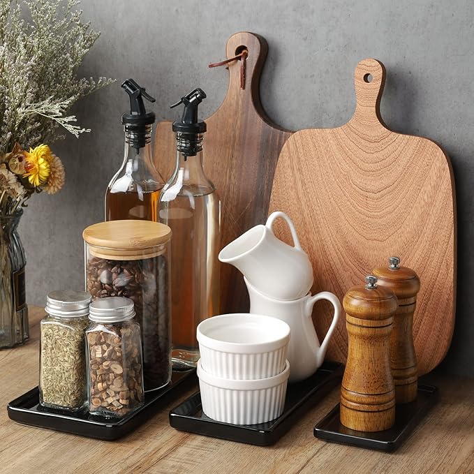 - PREMIUM QUALITY: These small ceramic counter trays for bathroom,kitchen is made of lead-free and non-toxic ceramic,which is stable and durable, Easy to clean and store; Microwave,Freezer,Oven,Dishwasher safe