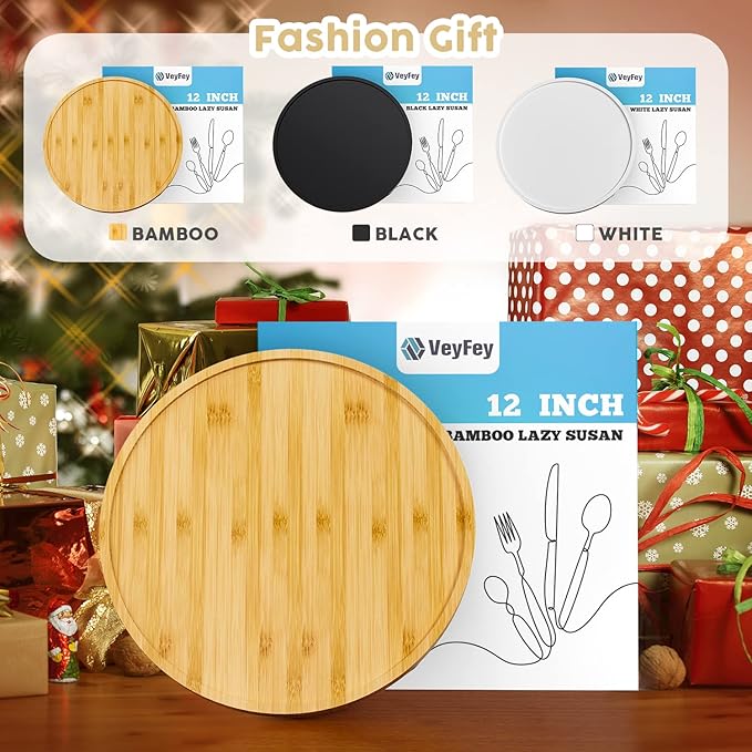Lazy Susan for Table, 12 Inch Non-Skid Bamboo Turntable Organizer for Salt Pepper Spices and Olive Oil Next to Stove, Wooden Lazy Susan Organizer for Kitchen Countertop Organizer