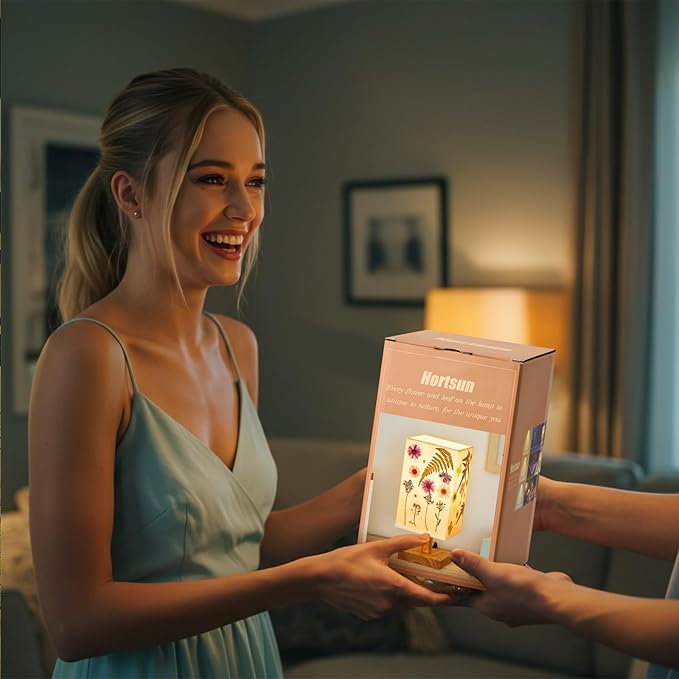 Hortsun Pressed Floral Lamp Bedside Vintage Flower Desk Lamp for Bedroom Living Room, Dorm, Home, Office Decor(1 Pcs,Square Style)