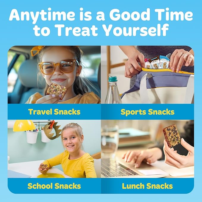 - Allergy Friendly Options Just Got Exciting – Blake’s 24-bar bulk snack packs feature 3 kid-approved flavors (Chocolate Chip, Birthday Cake & Original) individually wrapped and perfect for adding fun and variety to lunchboxes, even for picky eaters