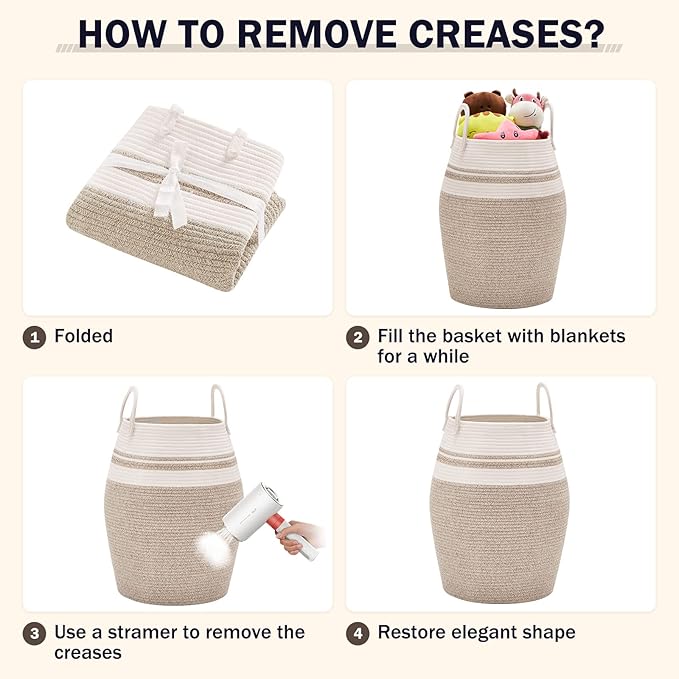 - ❤【Multipurpose Storage Baskets】105L capacity basket can keep things organized in a stylish and decorative way. You can use them to store extra towels, blanket, clothing, toys for baby and dogs, books, pillows or any other household items around the house, anything you can imagine